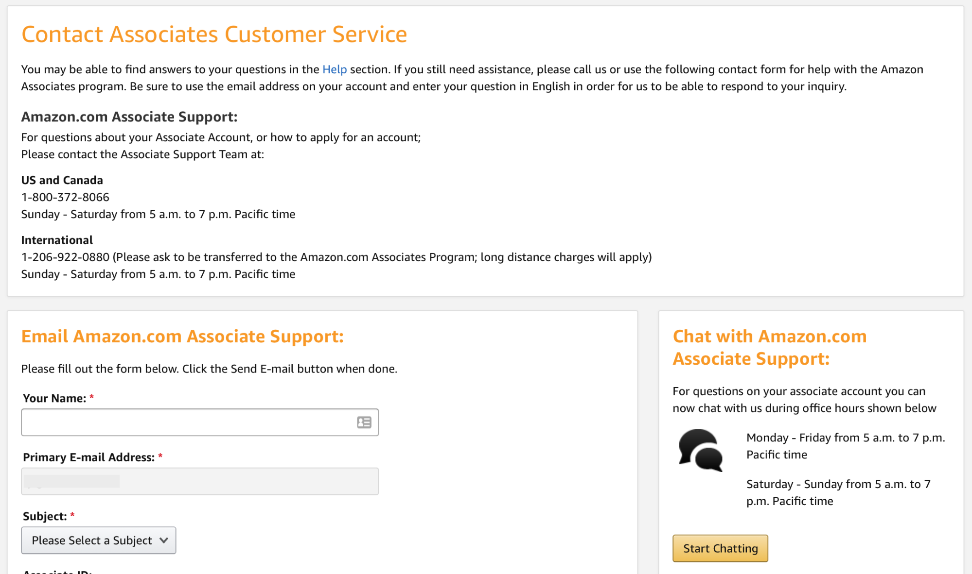 Second, ask them! There are multiple ways to contact Amazon affiliate support including by chat, a phone number, and a form to start an email thread. However, when you ask a question, we recommend you don’t just ask once but ask via different channels and different mediums. We recommend asking the same question, phrased slightly differently, at least three times and comparing the response and using the response that came up most often.